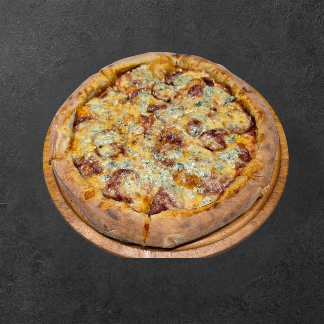 salcë domateje, guda, mozzarela, suxhuk vici, djath i bardhë, gorgonzola, rigon